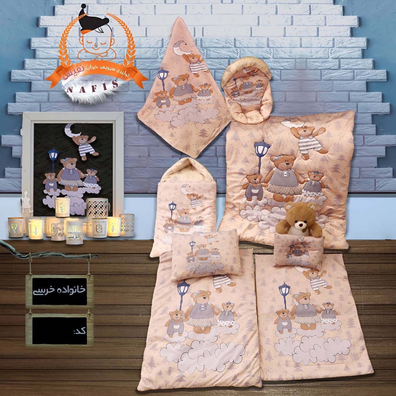 سرویس خواب نوزاد ۸ تکه طرح خانواده خرسی
