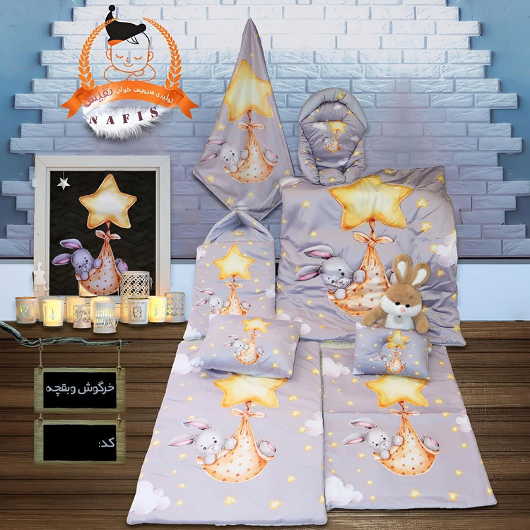 این سرویس خواب شامل زیرانداز نرم، تشک استاندارد و راحت، لحاف لطیف، آغوش ضدحساسیت، پتو پیچ کاربردی، بالش بزرگ و بالش شیردهی و قنداق فرنگی میباشد. پارچه ضدحساسیت و طراحی شده با عشق و دقت.